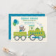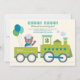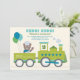 Envie aos convidados um bilhete para viajar com este divertido convite de aniversário de trem choo choo em um fundo azul com bolinhas. Um adorável condutor de urso de pelúcia acena de uma locomotiva a vapor brilhante que puxa um vagão ferroviário festivo com estrelas e balões. A letra em negrito "Choo! Choo!" define o tom acima dos detalhes personalizáveis da festa em tipografia mista alegre. Cada linha de texto pode ser personalizada para combinar com o dia especial do seu pequeno engenheiro.