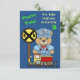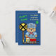 Este é um convite de aniversário adorável para uma criança, e pode funcionar para qualquer idade, pois você pode facilmente personalizar todo o texto, tanto frente quanto atrás. Apresenta uma imagem de ursinho de pelúcia castanho-claro vestida com engenheiros e boné de trem com faixas azuis. Um sinal de travessia de ferrovia amarelo e preto está ao seu lado, e um trem de brinquedo completo com trilhos está aos seus pés. A imagem e o texto são colocados em um plano de fundo azul. O verso do convite tem o seu texto personalizado em amarelo claro e uma segunda imagem do engenheiro do ursinho. Crianças e adultos vão adorar! *Obrigados para Clipart Real Deal para o cliente usado para criar este design.