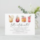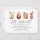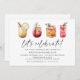 Convites de festas de aniversários modernos com ilustrações de aquarela de cocktails de inverno/feriados em tons de vermelho, verde, laranja e marrom. A frase "Celebração de Vamos!" é exibida em um script manuscrito com os detalhes de sua parte mostrados abaixo. Os convites de aniversário para adultos são perfeitos para o inverno e as festas de aniversário de Natal/Férias!