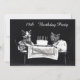 Convites bonitos, personalizados do aniversário do costume 18os para mulheres. A fotografia antiga lunática, engraçada, preto e branco de dois/2 bonitos, gatinhos adoráveis vestiu-se na roupa do partido que senta-se em uma mesa coberta com um pano de mesa branco e preto com um bolo de aniversário branco com velas em um fundo preto liso. Esta é uma fotografia subtil do vintage de dois gatos que esperam para comer seu bolo, um convite perfeito do aniversário para todos os amantes do gato. Estes são divertimento, original, originais, convites para suas décimas oitavas/18as celebrações da festa de aniversário e são inteiramente personalizable e são imprimidos/decorados em em ambos os lados/imprimir tomado partido dobro/impressos em dois lados. Se você precisa algum auxílio em personalizar seu produto me contacta por favor através de minha loja e eu estarei feliz ajudar. Esteira da pérola pelo ©Hazel Kinvig-Paul www.design-a-dream.co.uk.