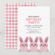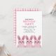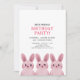 Tema de coelhinho fofo para a festa de aniversário da Melhor Amiga com três coelhinhos rosa. Parte de trás com padrão xadrez.