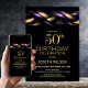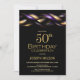 Convite Festa de aniversário Dourada 50ª roxa preta
