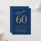 Celebre o grande marco de fazer sessenta anos com este belo e personalizado convite de 60 anos. Apresentando um fundo azul na moda com script ouro, este convite de festas personalizadas não deixará de abençoar seus convidados e tornar sua celebração inesquecível. Convide seus amigos e família para se juntarem a vocês em comemorar esta ocasião importantíssima com este convite.