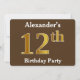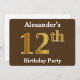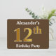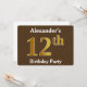Este design de convite apresenta o número ordinal "12" com uma aparência falsa em forma de ouro. Também apresenta um nome personalizado e um fundo castanho. Os detalhes do evento no verso podem ser personalizados. Poderia ser usado para convidar pessoas para a décima segunda festa de aniversário de alguém. [~Z0000015]