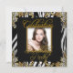 Ornamentado de Elite Elegante Zebra Animal Zebra Negra Dourada Floral 50º 40º, 30, 60º, Festa de aniversário Adicionar Sua Foto Mulheres Rapariga Barato Barato Convite Moderno para qualquer evento Convite Personalizar para mudar de idade e detalhes