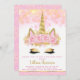 Convite Festa de aniversário Dourada de Unicórnio rosa