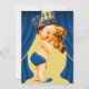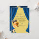 Você vai adorar esta design com um menino Príncipe com seu ursinho de pelúcia vestido de azul e ouro em uma cortina de palco de teatro.