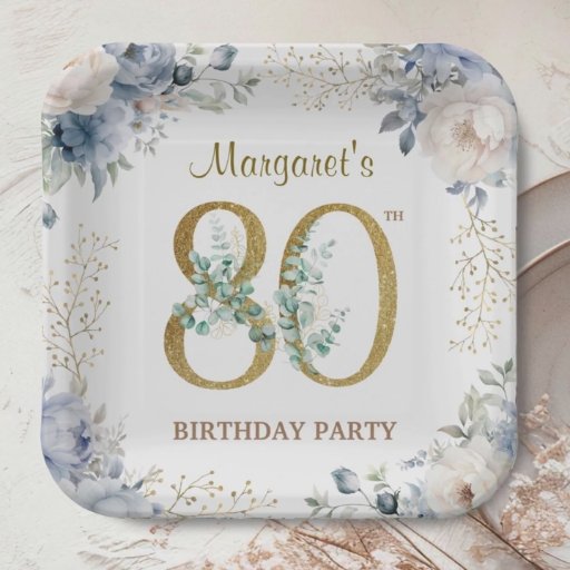 80th Birthday Elegant Gold & Dusty Blue PeonyCriado por H-Art Studio Design