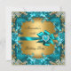 Convite Festa de aniversário Dourada Floral Elegante Azul