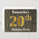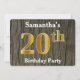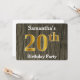 Este design de convite apresenta o número ordinal "20" com uma aparência falsa em forma de ouro. Ele também apresenta um nome personalizado, e uma madeira rústica parece fundo. Os detalhes do evento no verso podem ser personalizados. Poderia ser usado para convidar pessoas para a vigésima festa de aniversário de alguém. [~Z0000016]