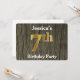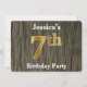Este design de convite apresenta o número ordinal "7" com uma aparência falsa em forma de ouro. Ele também apresenta um nome personalizado, e um fundo de aparência rústica de madeira falsa. Os detalhes do evento no verso podem ser personalizados. Poderia ser usado para convidar pessoas para a sétima festa de aniversário de alguém. [~Z0000016]