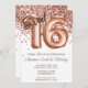 Convite de aniversário Dourado Sweet 16 e rosa rosa-gold elegante convite de aniversário moderno 16 para uma menina de 16 anos com moderno roteiro escrevendo e balões de folha divertida.