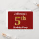 Este design de convite apresenta o número ordinal "5" com uma aparência falsa em forma de ouro. Também apresenta um nome personalizado e um fundo vermelho. Os detalhes do evento no verso podem ser personalizados. Poderia ser usado para convidar pessoas para a quinta festa de aniversário de alguém. [~Z0000012]
