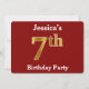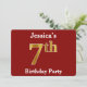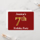 Este design de convite apresenta o número ordinal "7" com uma aparência falsa em forma de ouro. Também apresenta um nome personalizado e um fundo vermelho. Os detalhes do evento no verso podem ser personalizados. Poderia ser usado para convidar pessoas para a sétima festa de aniversário de alguém. [~Z0000012]