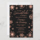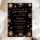Este convite elegante e glamouroso apresenta faux glitter faux glitter faux rosa de aquarela e faíscas sobre fundo preto. É perfeito para uma festa de aniversário temática de inverno ou Natal.
