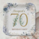 Celebre o marco de 70 anos em estilo com o nosso elegante "70 Festa de aniversário Elegante Dusty Blue Floral Invitation!" Perfeito para uma festa de aniversário 70 memorável. Ordene seu dia de hoje e faça sua celebração realmente especial! Note-se que os efeitos Dourados de brilho são simulados; não será usado ouro real no processo de impressão
