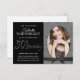Um brilho "de prata" muito bonito, corajoso do preto, do branco e das cinzas coloriu o design que trabalha bem com a fotografia da cor preto e branco ou completa da senhora bonita (ou do cavalheiro) que comemoram aniversário do marco miliário um fiftieth. Convide a família e os amigos a uma celebração especial. Do efeito elegante do brilho do falso das características de design a área de quadro dada forma oval da foto que parece ser envolvida em uma fita bonito. e goste do texto da escrita do roteiro com flourishes e ondas. Ajuste seus tamanhos e colheita da imagem da foto ao terno. A imagem da amostra é apenas para fins ilustrativos - substitua com sua própria fotografia. Note que todos os enfeites e áreas do brilho é ilusão digital somente, este é um produto impresso plano e não há nenhum fita real, tinta ou sparkles metálico ou outros materiais neste convite.