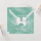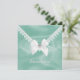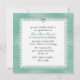 O convite de aniversário de Quinceañera da menina adorável, feito em gráficos, para parecer uma cebola verde de menta. A frente do convite é feita para parecer um envelope, com gráficos de renda, arco branco de cetim e um diamante em forma de coração. A parte de trás do convite tem uma área de texto branco quadrado, estampada no mesmo olhar, como a frente, com o pequeno diamante em forma de coração no topo. Todo texto é personalizável e pronto para personalizar para o dia especial de sua filha.