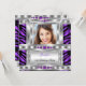 Elegante Adicione sua foto, Impressão Animal de Zebra Roxa, Branco de Prata Negra e Festa de aniversário de Diamante. Formal de Convite para Meninas da Mulher. Use para qualquer convite de evento. Personalizar para alterar a idade e os detalhes. Personalize com seus próprios detalhes e idade. Modelo para Graduação, Doce 16, 16, Quinceanera 15, 18, 20, 21rua, 30, 40, 50, 60, 70, 80, 90, 100, Produto Fabuloso para Mulheres Adultas, Meninas adolescentes, Zizzago criou esta design. Envie todas as imagens planas! Eles não têm brilho real, joias de diamantes ou Arcos reais!