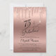 Elegante e chic 75º convite de aniversário com "75 & Fabuloso" em um script de na moda contra fundo rosa dourado, com gotas de brilho falsa rosa.