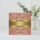 Convite de festa de aniversário lindo em coral e dourado. Adicione seus detalhes na frente e no verso deste convite de aniversário elegante em coral e dourado, adicionando detalhes do evento, estilo de fonte, tamanho e cor da fonte e texto.