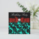 Convites de festa de aniversário em damasco vermelho e azul turquesa lindos. Este convite de festa elegante em preto, vermelho e azul turquesa é facilmente personalizado para o seu evento, adicionando os detalhes do evento, estilo de fonte, tamanho e cor da fonte e texto. Por favor, note que todos os adesivos, cartões e desenhos de convite que você encontrará na Zazzle são gráficos impressos sem joias, laços, relevos, rebaixos ou peças ou partes adicionadas.