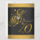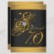 O esguicho esmaga o convite de aniversário 70 preto e ouro. Este belo convite de aniversário de setuagésimo preto e dourado é facilmente personalizado para o seu evento adicionando detalhes do seu evento, estilo de fonte, tamanho e cor de fonte e texto. Observe que todos os adesivos, cartões e designs de convite que você encontrará no Zazzle são gráficos impressos sem joias reais, arcos, levantados, gravados, ou peças ou peças adicionadas.