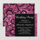 Diversão Rosa Luxo e glamour para qualquer festa de aniversário feminina, seja sofisticada ou simples. Ótimo para aniversário de 30 anos ou qualquer idade, convite fofo com efeito brilhante falso e redemoinhos pretos, convite de festa personalizado e elegante. Convites bonitos e festivos. Imagem fotográfica preta e cintilante de brilhos para celebrar o grande dia da convidada de honra.