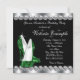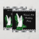 Convite de festa de aniversário feminino preto e verde esmeralda elegante com sapatos de salto alto glitter verde esmeralda em um fundo de diamantes. Este convite de festa de aniversário preto e verde esmeralda é facilmente personalizado para o seu evento, adicionando detalhes do evento, estilo de fonte, tamanho e cor da fonte e texto. Você também pode alterar a cor do fundo. Este é um design impresso sem glitter real, diamantes, etc.