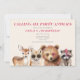 Animais selvagens de uma festa rock n roll / music festival inspiraram um tema de festa de aniversário em áreas de madeira apresentando cubo de urso com pelo rosa e raio rosa sobre um olho, guaxinim com mowk e coração cor-de-rosa sobre um olho, raposa com óculos escuros e veado com manchas cor-de-rosa.