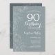 Convite de aniversário Floral de 90 de Aço Azul Design minimalista moderno com desenhos botânicos em destaque e letra de script de tipografia. Simples trendy convida cartão perfeito para uma festa de na moda. Pode ser personalizado para qualquer idade. Impressos convites Zazzle ou modelo de impressão digital instantânea para download.