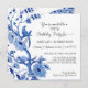 "Blue Chinoiserie Asiática China Floral Convite de aniversário Suite e Produtos de Partido de Papel." Trabalho de arte de aquarela pintada manualmente moderna inspirada por um belo e antigo mural de azulejo chinês. Flores azuis e brancas, pássaros e pagodes estilizados todos pintados em variadas tonalidades de azul no estilo decorativo da cerâmica de porcelana. Os azuis combinam na coleção para que você possa escolher seus favoritos nos vários designs que criamos. Trabalho de arte pintada por uma artista e designer internacionalmente licenciada, Audrey Jeanne Roberts, Copyright todos os direitos reservados.
