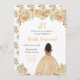 Este convite de aniversário apresenta flores florais de creme de pêssego, falso brilho, e uma bela princesa com pele escura e um vestido elegante. Isto é perfeito para uma festa de aniversário.