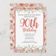 Convite Festa de aniversário Floral de 90 de Aquarela Femi
