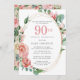 Convite Festa de aniversário Floral de 90 Rosa Elegante