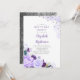 Flores de aquarela púrpura e convites de festas de aniversários de confete de brilho prateado