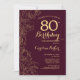 Convite Festa de aniversário Floral Dourada Burgundy