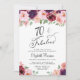 Convite de aniversário Elegante com "70 & Fabuloso" em um script de na moda e buquês de aquarelas de vermelho-burgundy, rosa-pincelado e roxo com verde-claro.