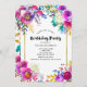 Convites de Festa de Aniversário Floral em Aquarela Divertida e Vibrante.