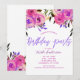 Convites de Festa de Aniversário Floral Moderna Rosa e Roxa Brilhante.