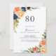 Este convite de aniversário multicolor elegante de 80 floral é perfeito para uma festa de aniversário moderna. A design apresenta buquês perfeitamente desenhados à mão de rosa, pincelado, amarelo, burgundy, vermelho, indigo e folhagem verde, inspirando beleza natural.