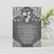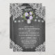 Convites de Festa de Aniversário Floral Rústica Cinza Prata Roxo - - apresentam fundo de madeira de celeiro vintage/rústico cinza ou prata com luzes de corda e renda floral. O design também apresenta flores elegantes em vários tons de roxo em um jarro de pedreiro prateado que você pode personalizar para as iniciais de sua escolha.