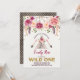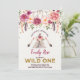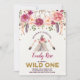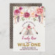 Convite floral do primeiro aniversario do boho rústico que caracterizam rosas da aguarela, penas e coletor ideal - aperfeiçoe para a UMA celebração SELVAGEM boémio-temático do aniversário!