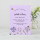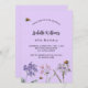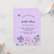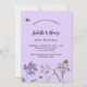 Um fundo colorido violeta e lavanda. Decorado com abelhas e pintado flores silvestres em violeta e rosa. Personalize e adicione um nome e detalhes da parte.