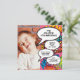Personalize com o nome e foto da menina ou menino aniversariante e todos os detalhes da festa. Um convite de aniversário inspirado em revista em quadrinhos retrô divertido e legal para qualquer idade que dá um toque especial em qualquer evento de aniversário de super-herói. Criado por Thisisnotme©