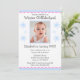 Celebre o aniversário de sua garotinha em estilo com este adorável convite de aniversário da Maravilha de inverno, rosa e floco de neve azul. Faz um excelente convidar para uma festa de primeiro aniversario de meninas temáticas de inverno. Adicione facilmente sua própria foto e personalize com suas informações.