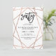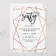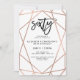 Estes 60th convites de festas de aniversários à moda caracterizam um teste padrão geométrico do ouro cor-de-rosa do falso em um fundo branco, com tipografia preta moderna.
