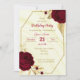 flores românticas elegantes e folhas douradas sobre o convite de aniversário de mármore de luxo de armação geométrica de ouro Os detalhes de brilho são simulados
