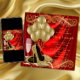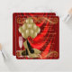 Convite de festa de aniversário vermelho e dourado para mulher, apresentando belos sapatos de salto alto com lantejoulas douradas, balões dourados, champanhe e pérolas sobre um fundo de cetim vermelho e redemoinho dourado glamoroso. Este convite de festa de aniversário vermelho e dourado é facilmente personalizado para o seu evento, basta adicionar seus detalhes no estilo de fonte e cor, texto e layout de sua escolha. Você também pode mover ou excluir o champanhe e os balões. Este é um design impresso sem jóias reais, pérolas, lantejoulas, etc.