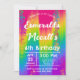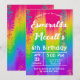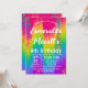 Celebre com um toque de cor! Este convite de festa vertical vibrante apresenta um fundo arco-íris ombre brilhante com confetes divertidos, perfeito para um animado aniversário infantil ou qualquer celebração alegre.
